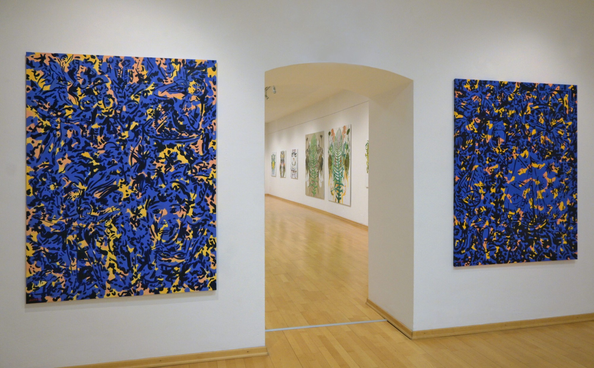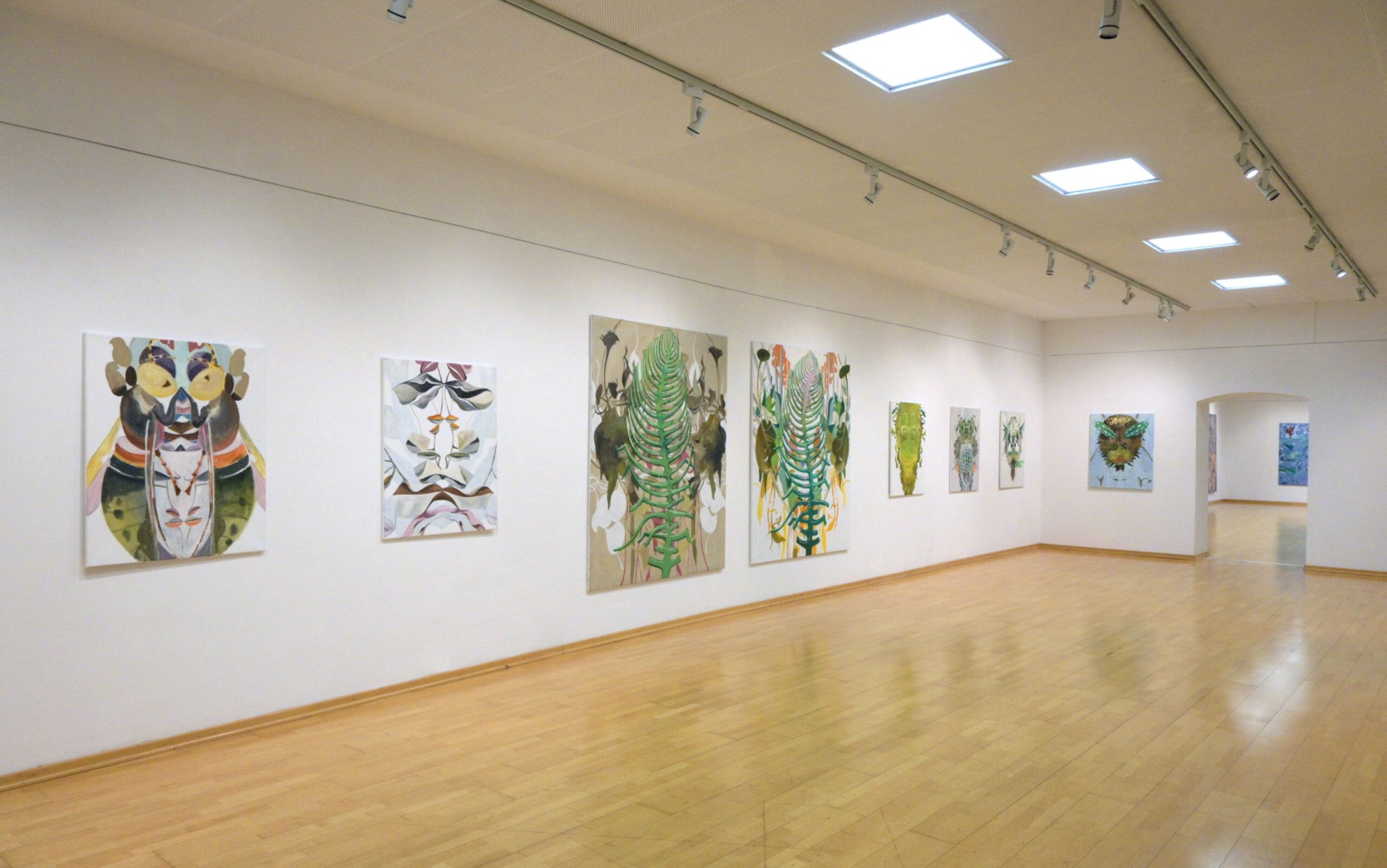 Oswald Auer, geboren in Bruneck, Südtirol, lebt und arbeitet in Wien. Seine bevorzugten Arbeitsmedien sind Zeichnung, Drucke und Stein. Gezeigt werden Werkblöcke aus den Serien „Sternbilder“, „Bäume“ und „Schwarm“. Alexander Fasekasch, der in Gmunden lebt und arbeitet, präsentiert eine Auswahl von Arbeiten, die sowohl experimentell als auch konzeptionell entstanden sind. Moni K. Huber, eine deutsche Künstlerin, die in Wien lebt, arbeitet mit den Medien Malerei, Fotografie und Video. Mit wenigen bildnerischen Andeutungen schafft ihre Malerei es, sowohl sie selbst als Künstlerin als auch die Betrachter in eine andere Zeit, Emotion und Lebensphase zu versetzen. Alois Mosbacher zählt zu den wesentlichen Repräsentanten der Neuen Malerei der 1980er Jahre. Seit über vierzig Jahren erzählt er in seiner Malerei von einem Universum aus Flora und Fauna. In dieser Ausstellung wird er einen bislang nicht gezeigten Werkblock präsentieren. Roman Scheidl, der kürzlich seinen 75. Geburtstag feierte, zeigt frische Werke. Seine Themenwelt wird auch hier berühren, durch Poesie und philosophischer Zugänge existentieller Natur. Gabriele Schöne lebt und arbeitet in Pillersdorf, Niederösterreich. In ihrer Arbeit spielt das Thema „Natur“ eine große Rolle. Dabei geht es nicht um Naturstudien, sondern um die Hinzunahme von all dem, was wir mit Natur verbinden und so in unseren Wunschvorstellungen haben wollen. Raum, Zeit und Bewegung sind die künstlerischen Leitlinien von Gerlinde Thuma, die in Gablitz lebt und arbeitet. Neben einer Videoarbeit wird sie frische Malerei und Grafik präsentieren.