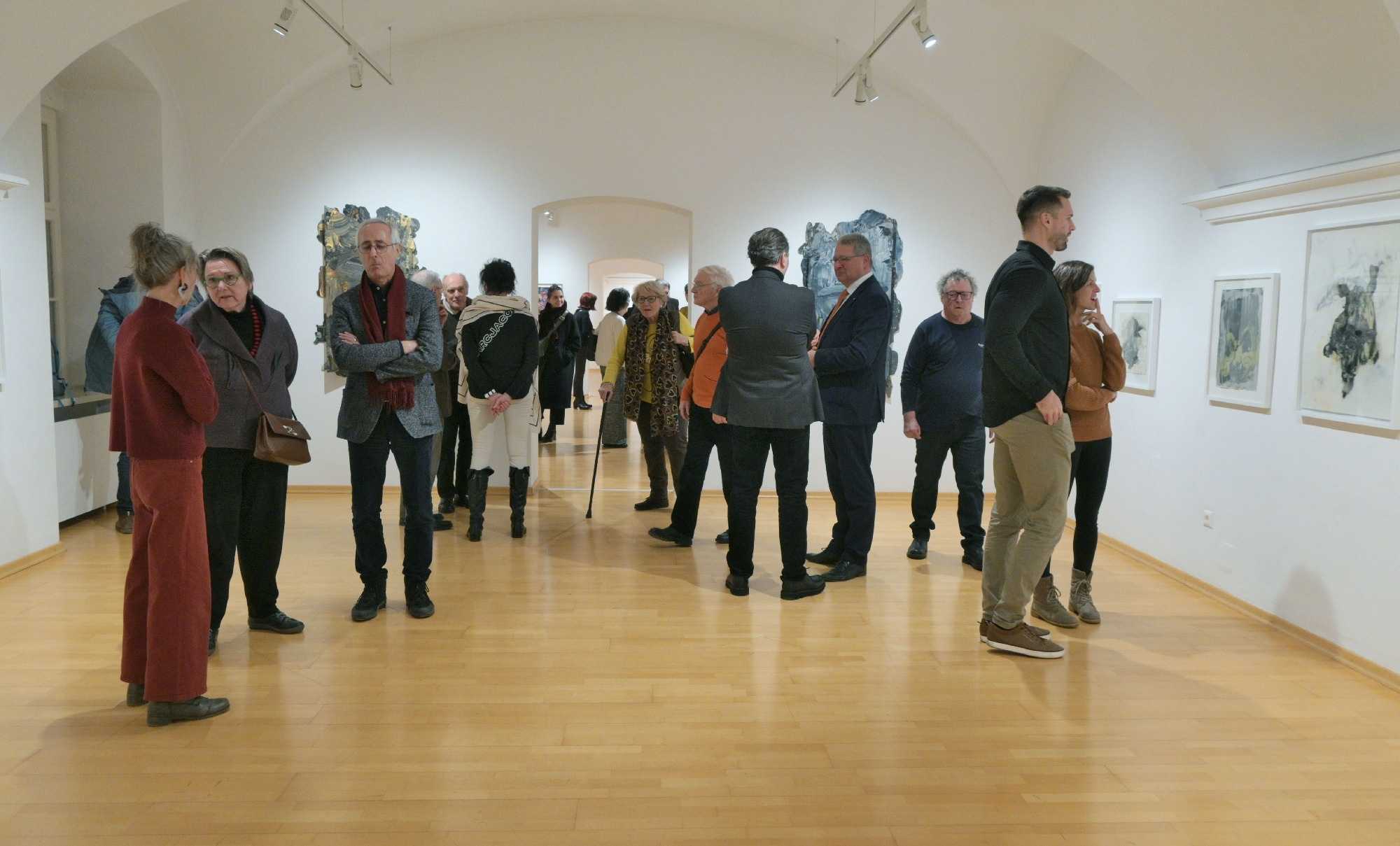 Es entfaltet sich ein produktives Wechselspiel unterschiedlicher Perspektiven. In den barocken Räumlichkeiten eröffnen sich Erfahrungsräume, in denen Abstraktion und Figuration, Grafik und Malerei, Objekte und Skulpturen sowie Licht und Farbe aufeinandertreffen. Dieses Spannungsfeld regt zur Reflexion an und setzt vielschichtige Wirklichkeiten in Resonanz.