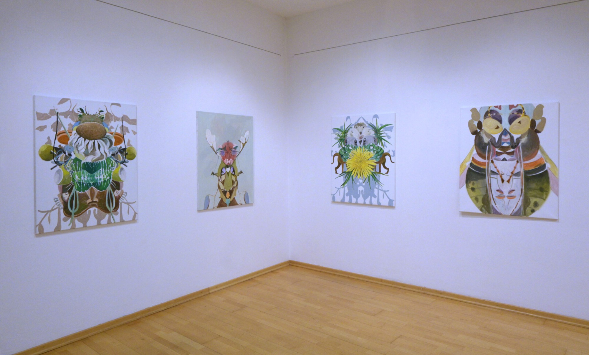 Oswald Auer, geboren in Bruneck, Südtirol, lebt und arbeitet in Wien. Seine bevorzugten Arbeitsmedien sind Zeichnung, Drucke und Stein. Gezeigt werden Werkblöcke aus den Serien „Sternbilder“, „Bäume“ und „Schwarm“. Alexander Fasekasch, der in Gmunden lebt und arbeitet, präsentiert eine Auswahl von Arbeiten, die sowohl experimentell als auch konzeptionell entstanden sind. Moni K. Huber, eine deutsche Künstlerin, die in Wien lebt, arbeitet mit den Medien Malerei, Fotografie und Video. Mit wenigen bildnerischen Andeutungen schafft ihre Malerei es, sowohl sie selbst als Künstlerin als auch die Betrachter in eine andere Zeit, Emotion und Lebensphase zu versetzen. Alois Mosbacher zählt zu den wesentlichen Repräsentanten der Neuen Malerei der 1980er Jahre. Seit über vierzig Jahren erzählt er in seiner Malerei von einem Universum aus Flora und Fauna. In dieser Ausstellung wird er einen bislang nicht gezeigten Werkblock präsentieren. Roman Scheidl, der kürzlich seinen 75. Geburtstag feierte, zeigt frische Werke. Seine Themenwelt wird auch hier berühren, durch Poesie und philosophischer Zugänge existentieller Natur. Gabriele Schöne lebt und arbeitet in Pillersdorf, Niederösterreich. In ihrer Arbeit spielt das Thema „Natur“ eine große Rolle. Dabei geht es nicht um Naturstudien, sondern um die Hinzunahme von all dem, was wir mit Natur verbinden und so in unseren Wunschvorstellungen haben wollen. Raum, Zeit und Bewegung sind die künstlerischen Leitlinien von Gerlinde Thuma, die in Gablitz lebt und arbeitet. Neben einer Videoarbeit wird sie frische Malerei und Grafik präsentieren.