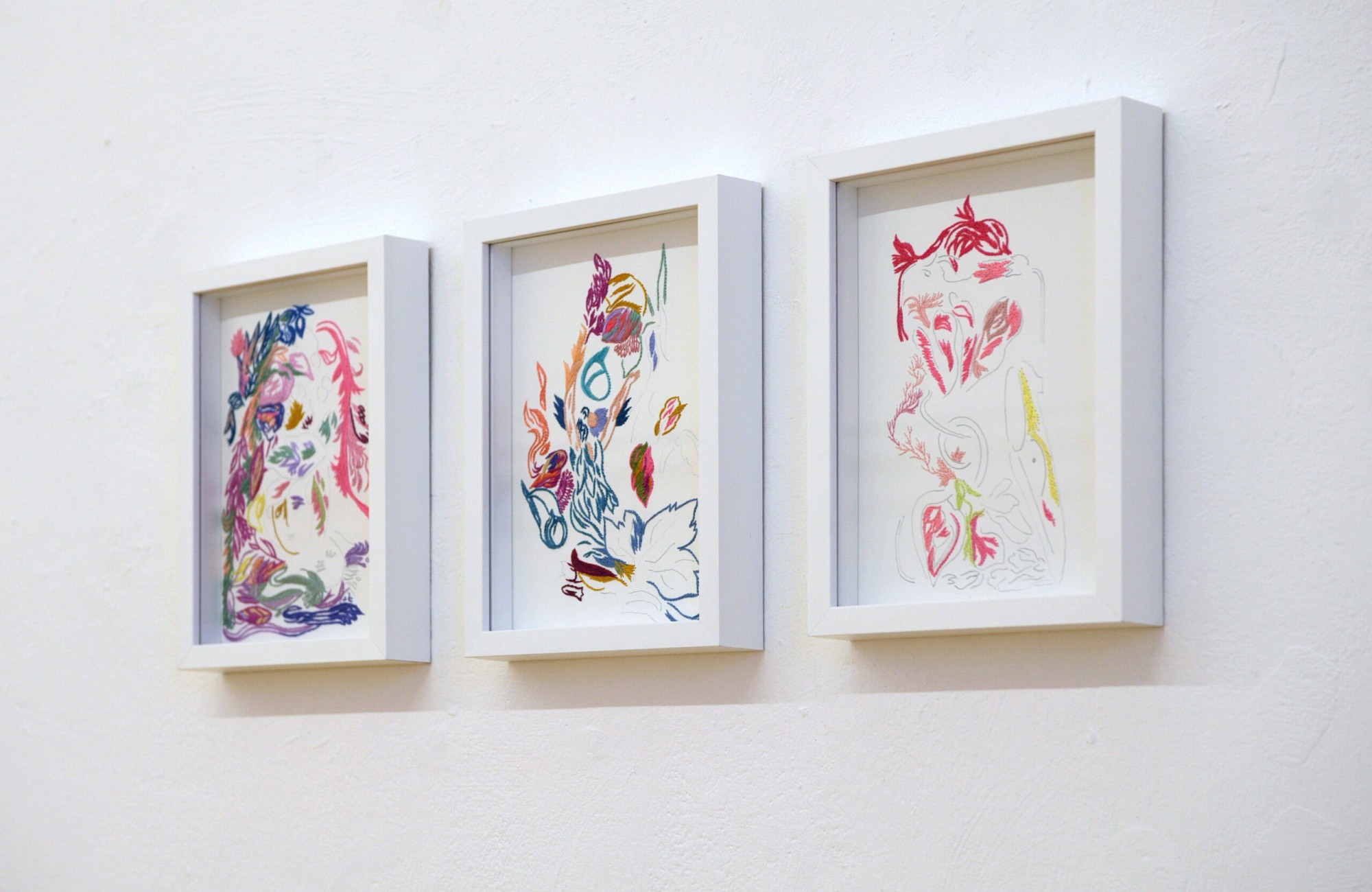 Auf eine intuitive und assoziative Erzählweise, die keine bestimmte Lesart vorgibt, beruhen die Arbeiten von Doroteya Petrova. Sie kombiniert in ihren Arbeiten Aquarell, Tusche, Stickerei und Textilcollage. Besonders die Vielfalt des Tier- und Pflanzenreichs, Wachstum und Verwandlung, die Lebensfreude aber auch das Verwelken und die Zerbrechlichkeit des Lebens sind ihr wichtige Themen.