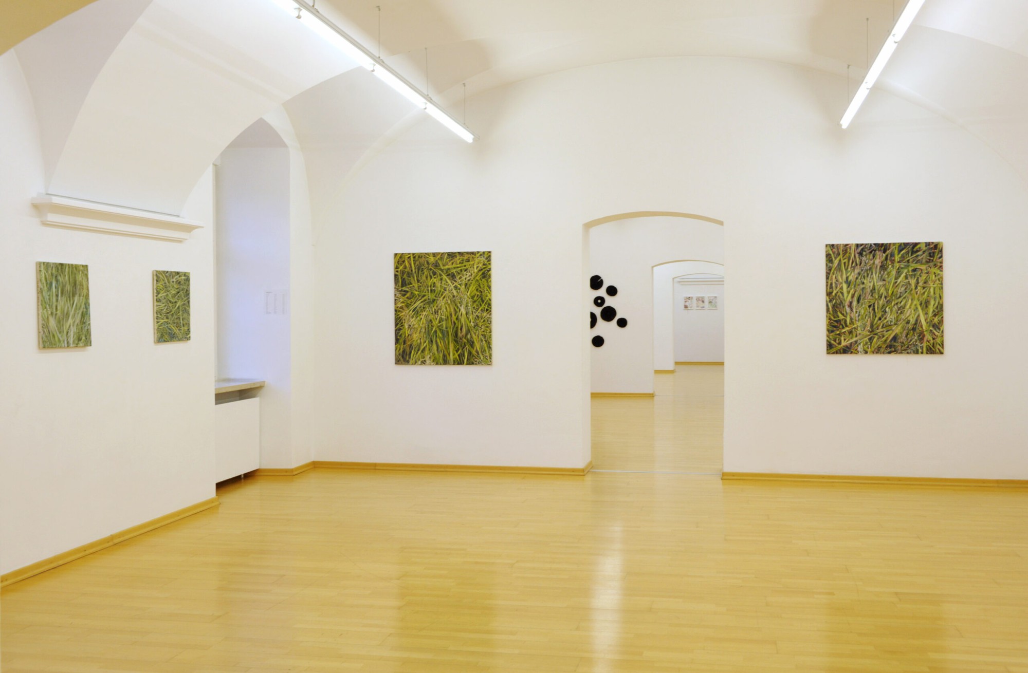 In umfangreichen Bilderserien setzt sich Isabell Kneidinger immer wieder mit der Natur auseinander. So malt sie Ausschnitte von Wiesen und Feldern, Pflanzen und Bäume. Ihr gegenwärtiges Interesse gilt der Ressource Boden. Ihr kleinformatigen Malstücke machen dabei auf die Wichtigkeit einer intakten Natur aufmerksam.